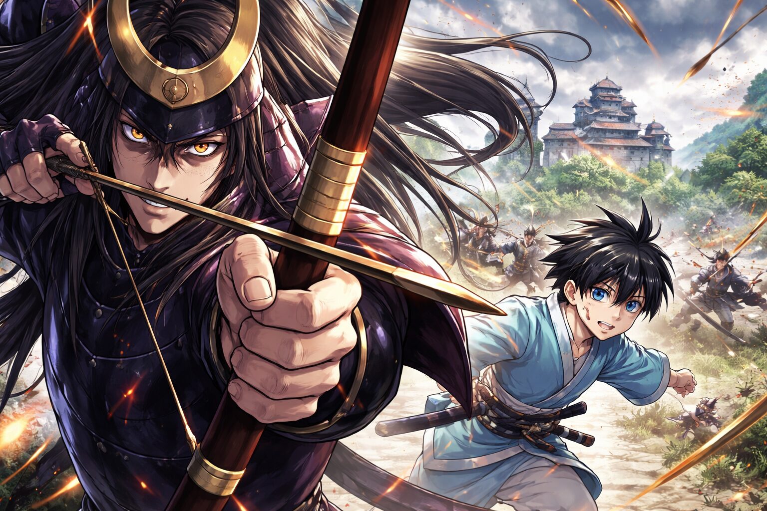 原作での弓の描き方も印象的です。アニメのように音や動きがないぶん、漫画では構図と余白がものを言います。そこで小笠原貞宗の弓は、単に武器として描かれるのではなく、“狙われている空気”ごとコマの中に閉じ込められている感じがあるんです。矢そのもののスピードだけでなく、射る前の間、狙いの確かさ、逃げても逃げても追われるような圧が、コマの配置で伝わってくる。これ、すごいことだと思います。紙の上では実際に音も動きもないのに、読者の側が勝手に気配を想像してしまう。小笠原貞宗の存在感って、まさにその想像を発動させる強さにあるんですよね。見えないものまで見せてくる感じがある。
