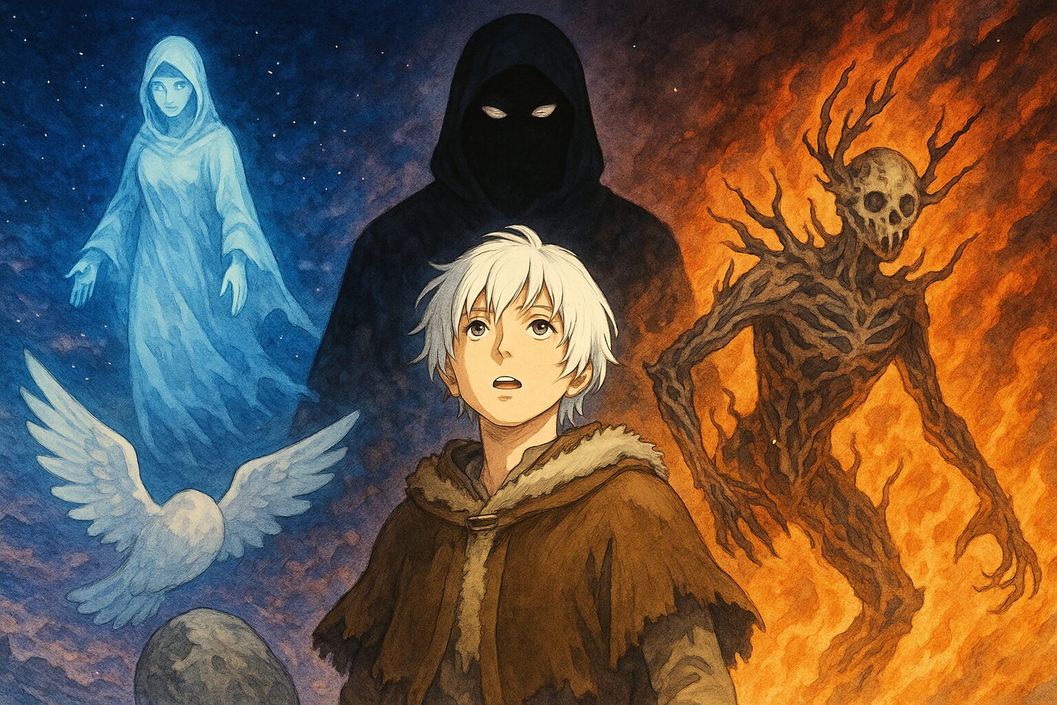 神話の世界では、神が人間を試す行為には必ず“目的”がある。勇気、信仰、知恵、あるいは愛。それらを見極めるために、神は試練を与える。フシも同じだ。彼は出会いと喪失を繰り返しながら、人間という存在を理解していく。そこに介入する観察者の無言の意図──それは「人間性の再生」を観測することだ。