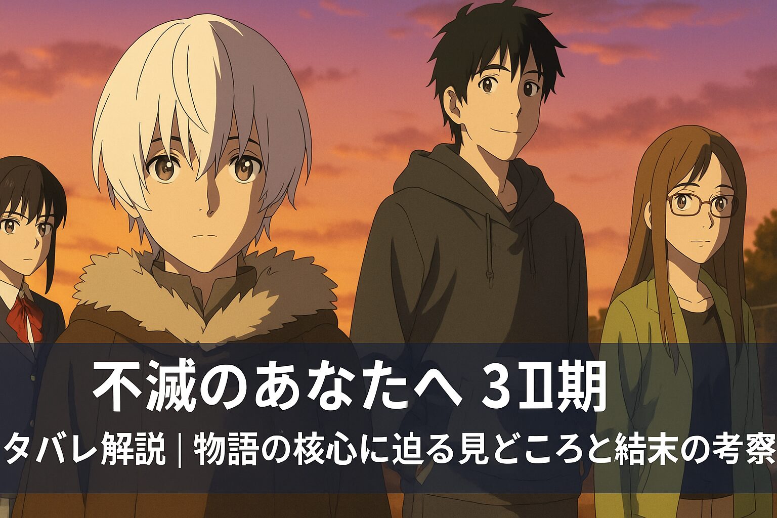 そして何より、第3期が描く“終わり”は、視聴者にとっての“始まり”でもあります。フシが再び歩き出す世界、観察者が涙を流す瞬間、そして現代社会に息づく“あなた”の存在。これらすべてが交わる地点で、『不滅のあなたへ』はついに“永遠”の定義を完成させる。結末を知ることよりも、その“意味”を感じ取ること──それこそが、この物語を観る最大の醍醐味なのです。