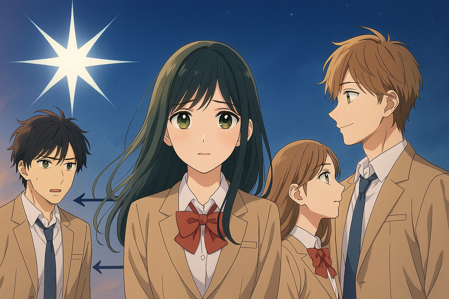 本記事では、アニメ版『太陽よりも眩しい星』の登場人物とキャラ関係図を整理しながら、〈鮎川・翠(翡翠)・神城〉の三角関係がどのように生まれ、どこへ向かうのか──その構造を徹底考察していく。