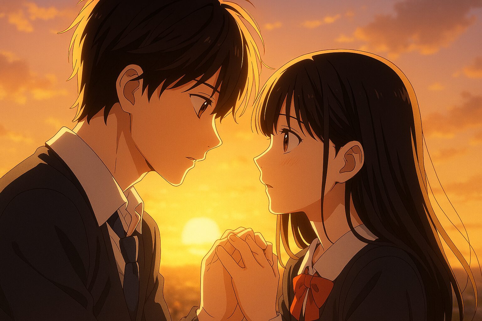 筆者がPVを観て感じたのは、「光が止まる」瞬間の演出だ。通常、アニメではキスシーンの直前に光が強まる。しかし本作では、逆に光が静まり、画面全体がやわらかな薄闇に包まれる。まるで“太陽よりも眩しい星”が、一瞬だけ呼吸を止めたかのように。そこに映るのは「眩しさ」ではなく、「穏やかな覚悟」なのだ。