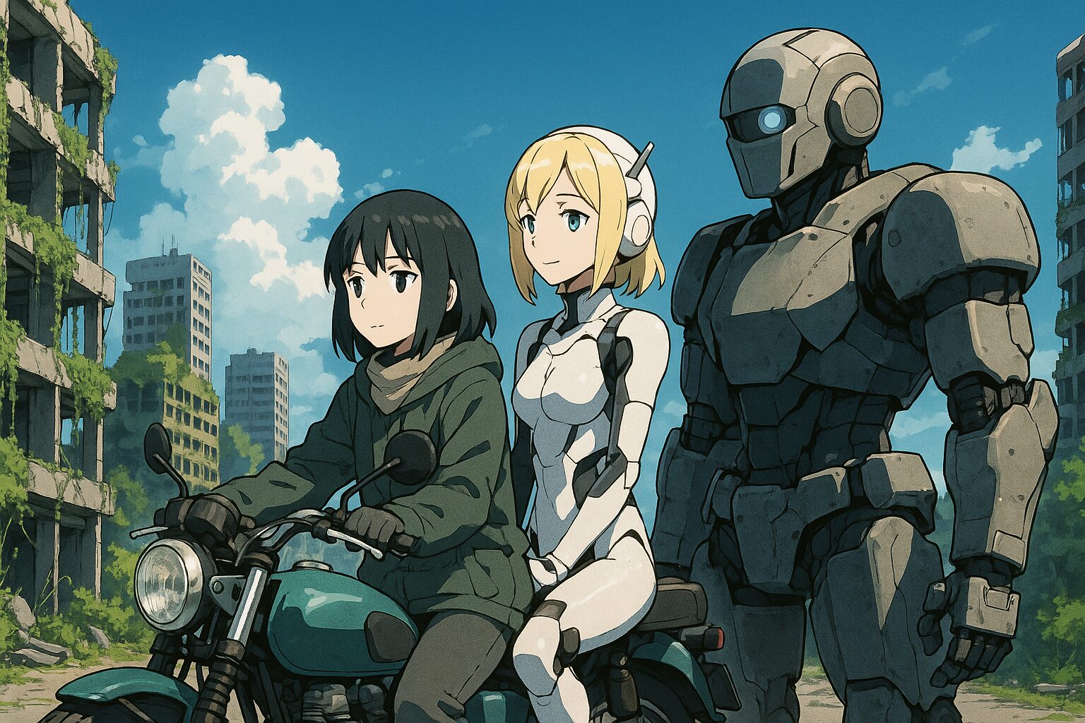 荒れ果てた日本──『終末ツーリング』の舞台を初めて目にしたとき、私は「静けさって、こんなにも胸を締めつけるのか」と思ってしまいました。富士山の崩落、街の沈黙、信号の灯りさえ消えた世界。その中でやけに鮮やかに浮かび上がるのが、ヨーコと、彼女と並走するロボットたちの“温度”なんです。とくにアイリの柔らかな声が、あの死んだ世界の中で妙に生々しく響く。これは単なるツーリング旅じゃなくて、人類不在の余白に“心”をもう一度描き直す物語ではないか、と強く感じた瞬間でした。