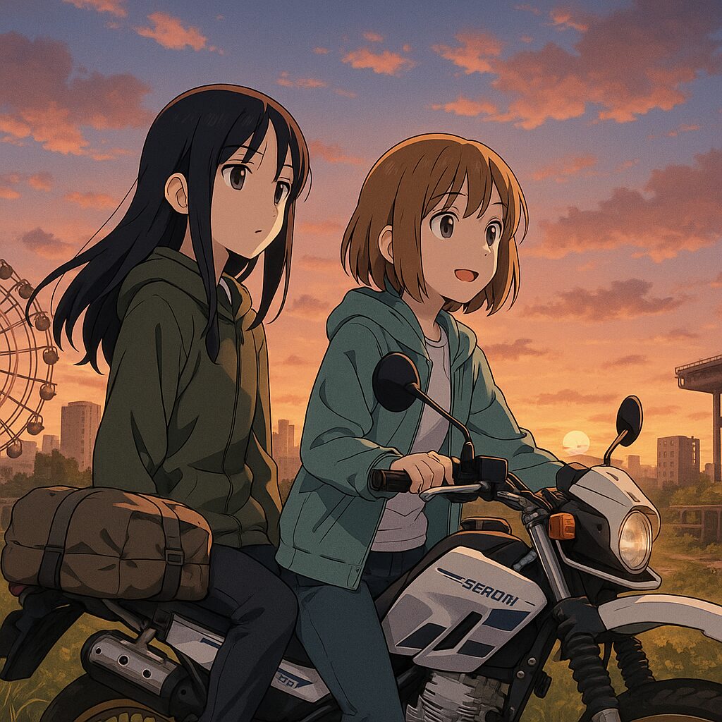 最後に少しだけ個人的な話をすると、私は「バイクが走るだけの画に泣ける」作品に人生で初めて出会いました。風景の抜け方、音の置き方、ふたりの台詞の間合い、すべてが“失われた世界を大切に扱うための儀式”みたいに感じられてしまう。電動セローと少女たちがゆっくりと終末を走る姿には、旅という言葉が持つ美しさと、終末という概念が持つ痛みが同時に宿っていて、その矛盾がどうしようもなく心を掴んでくるんです。