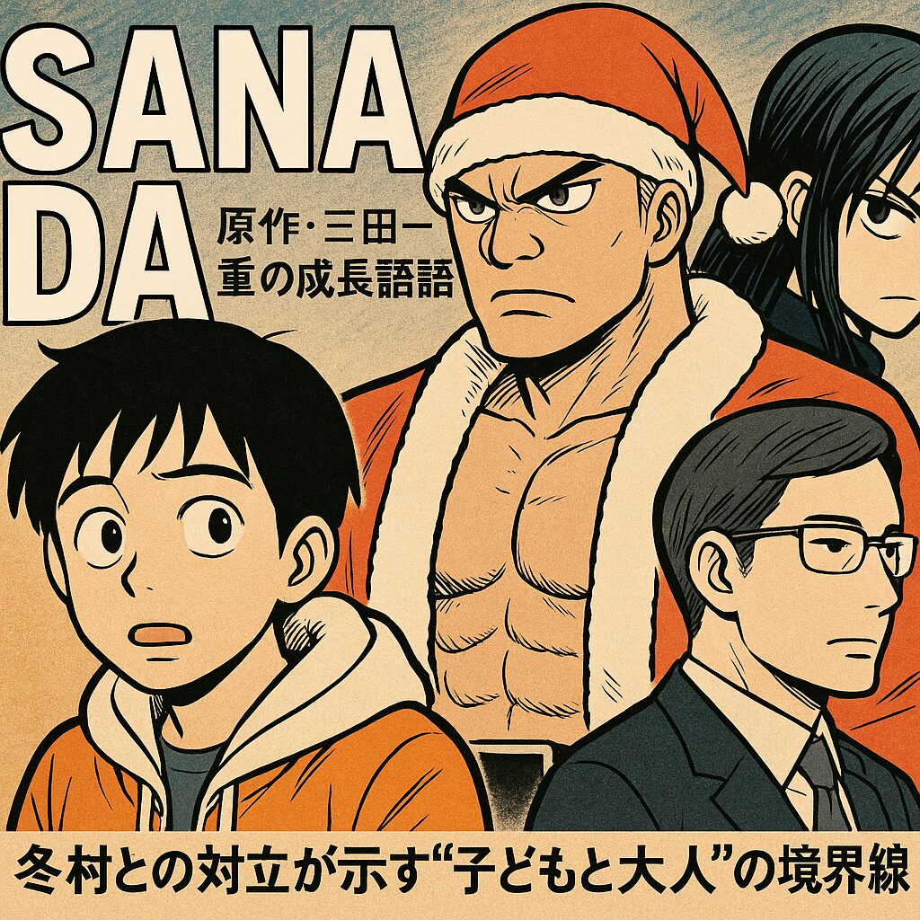 正直、私は三田の奮闘を読むたびに、心のどこかがぎゅっとつかまれる感覚があるんですよ。守られながら守ろうとする、そんな曖昧な立場に立たされた14歳の背中を、こんなにも丁寧に描く作品はそう多くない。SANDAはディストピアでありながら、そこに確かに“救われたいと願う子どもの声”が響いている。その声を、三田はサンタとして引き受けてしまう。そこにこそ、この物語の核があるんです。