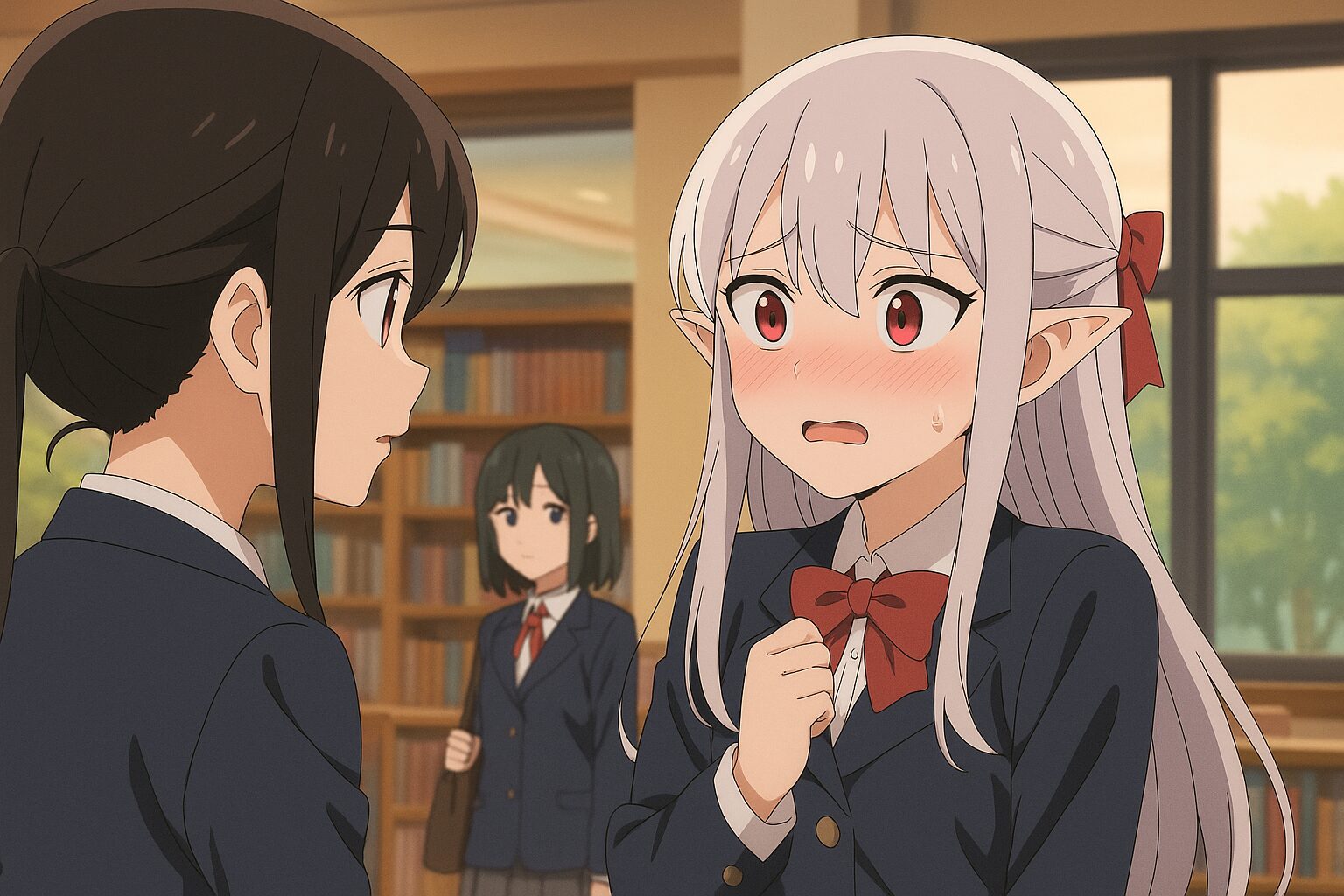 そして、月菜が大鳥に対してだけ距離を詰めるスピードが違う。例えば、ショッピングモールで並んで歩くときの肩の近さ。普通の友人関係なら“あと5センチは離れるでしょ”という距離感なのに、月菜はわりと自然に近づく。これを“恋”と言い切るのは早いかもしれないけれど、“信頼”としてはほぼ最大値に達しているように見えました。吸血鬼という種族設定の“孤独”があるからこそ、人間の大鳥を特別扱いしてしまう。そこにこの作品ならではの深さがあるんです。