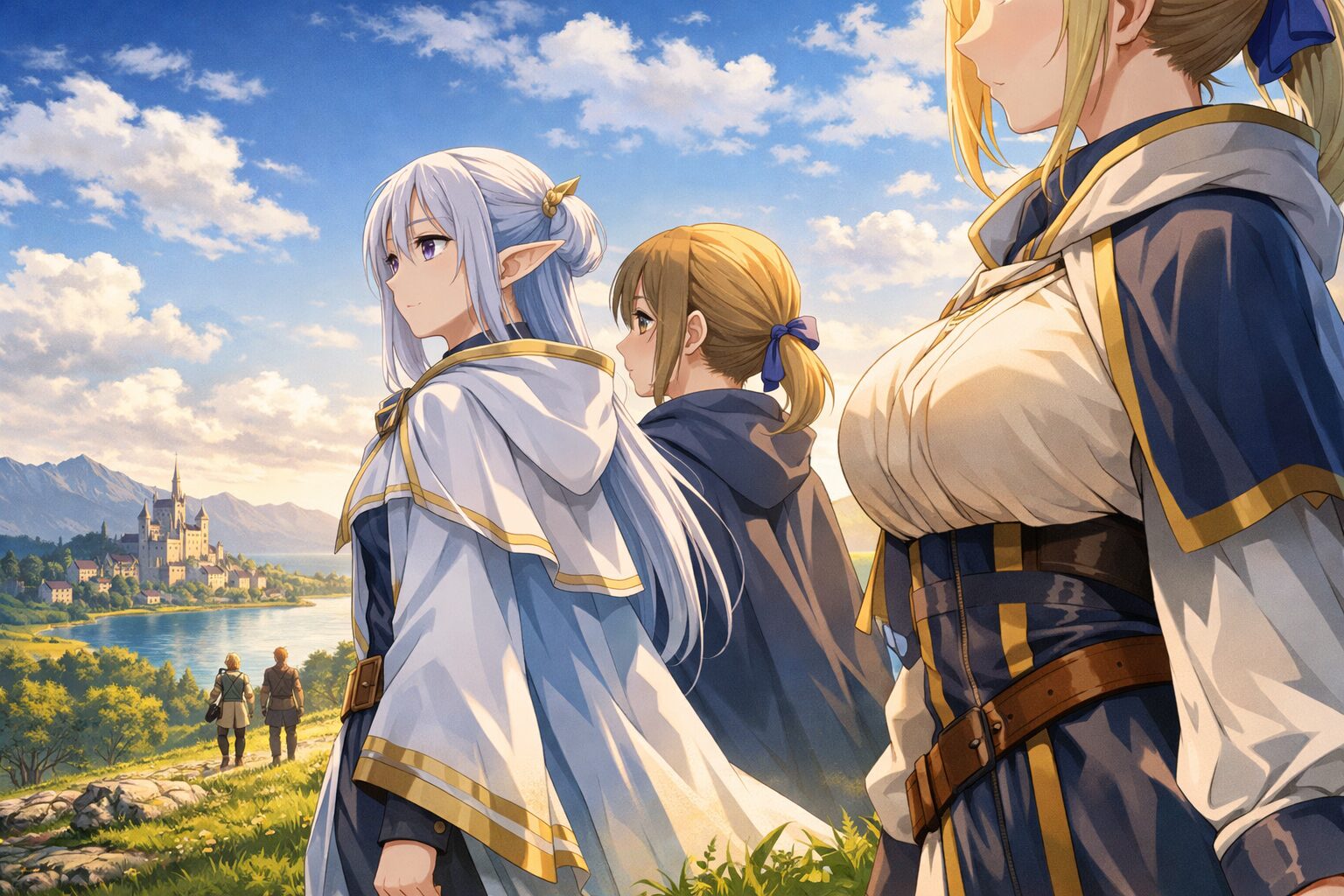 この違和感を分解していくと、最終的に行き着くのが「ローブ越しのシルエット」です。フェルンは基本的に、全身を覆うローブ姿が多い。それにもかかわらず、立ったとき、歩いたとき、フリーレンの隣に並んだときに、明確な“量感”が生まれる。