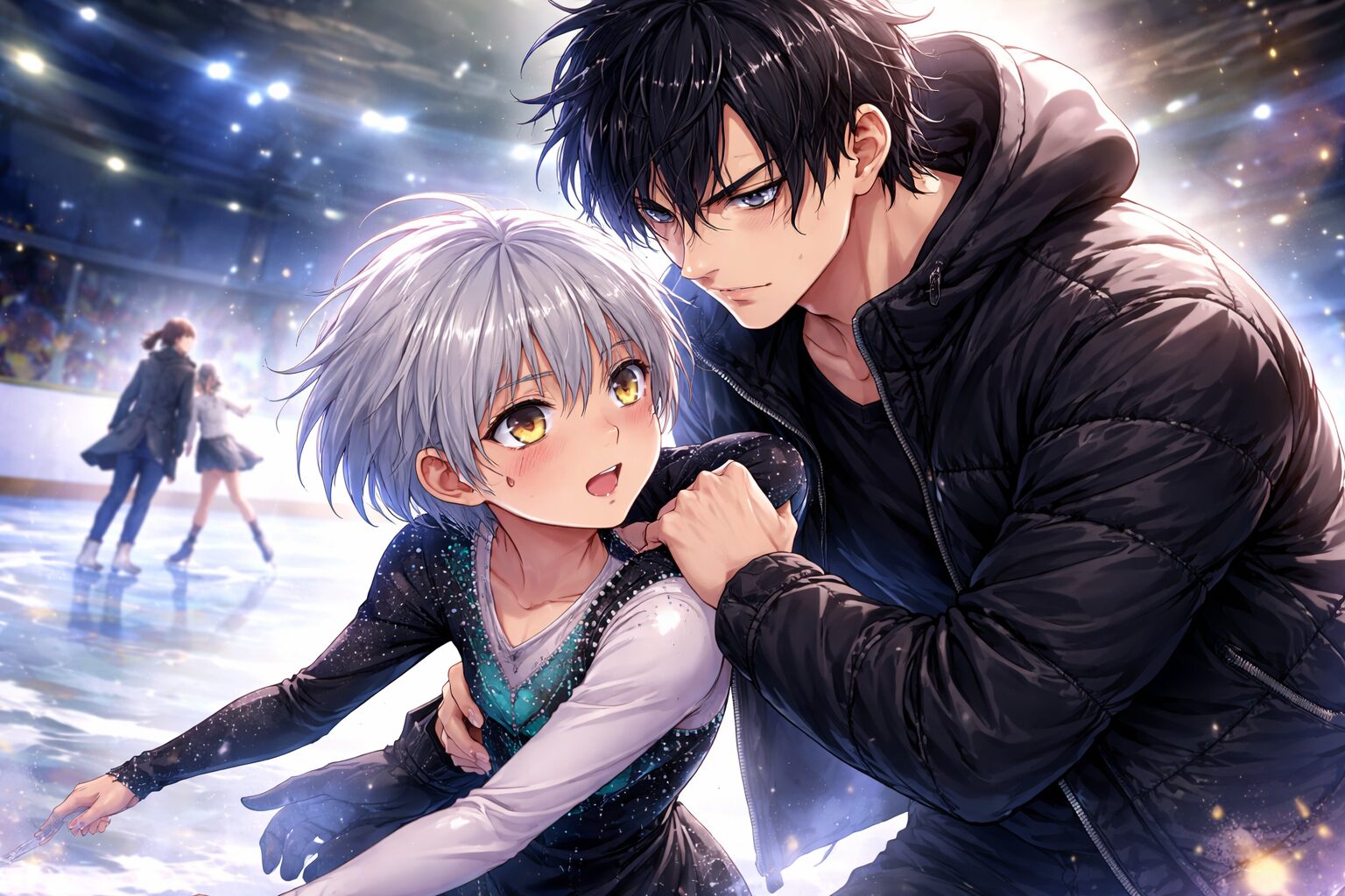 公式サイトや講談社の作品紹介文では、狼嵜光は“天才少女フィギュアスケーター”、夜鷹純は“男子シングルのオリンピック金メダリスト”であり、光は夜鷹の指導を受けていると、かなりはっきり書かれています。