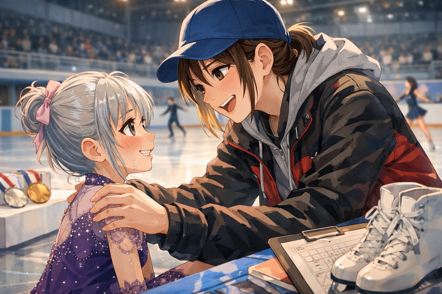 なっちんとミケの関係性を語るとき、どうしても避けて通れないのが、「弱さの扱い方」です。ミケは、競技者としての資質以前に、感情の揺れ幅が大きい。自分を疑う速度が速く、周囲の視線を過剰に背負ってしまう。その性質は、フィギュアスケートという競技において、致命傷にもなり得る。