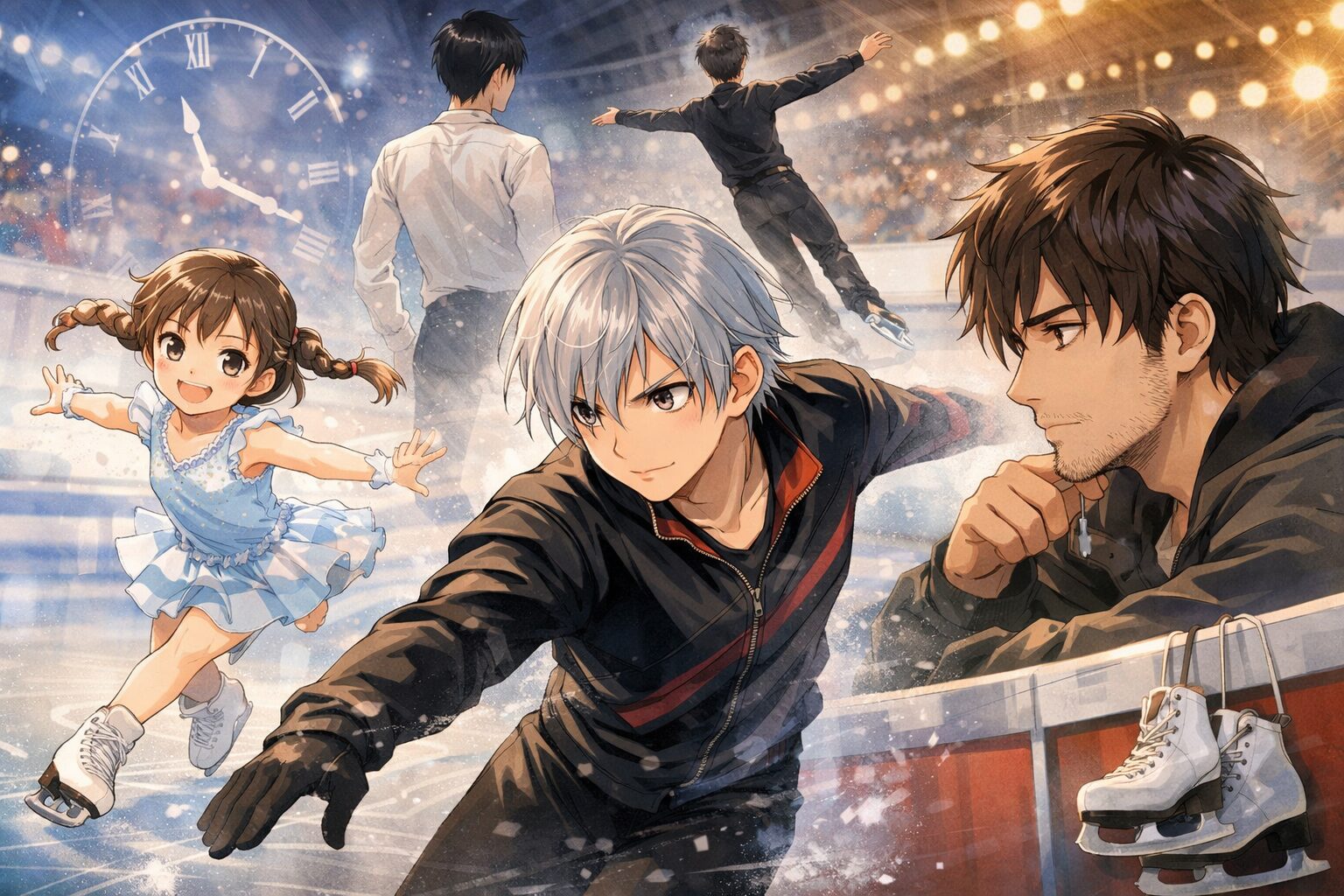 公式サイトや公式キャラクター紹介で確認できるのは、主に大人キャラクターです。たとえば、コーチである明浦路司26歳。この数字、さらっと流すと若く感じますが、フィギュアスケートという競技文脈で見ると、途端に重くなります。26歳で「指導する側」に立っているという事実が、彼の過去を無言で語っている。